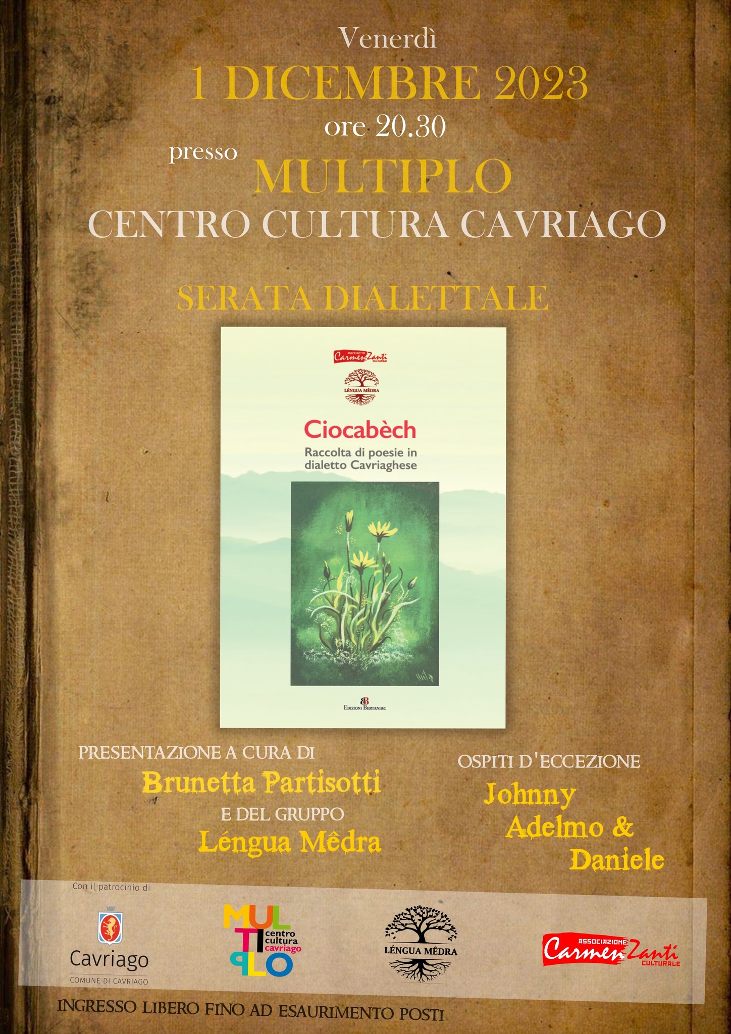 Brunetta Partisotti, curatrice della raccolta, sarà accompagnata da letture del gruppo Léngua Mêdra e dai brillanti intermezzi di Johnny Adelmo e Daniele