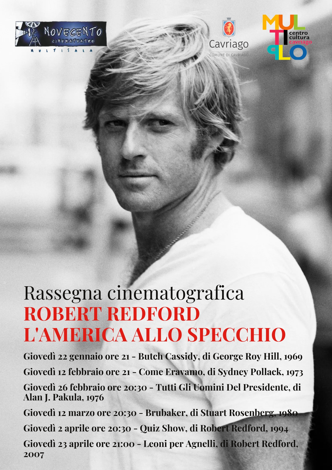 Sei film al Multisala Novecento per riscoprire Robert Redford, ognuno con l’introduzione di Nicola Bassano del Multiplo centro cultura, storico del Cinema, che ci porterà alla scoperta di retroscena e curiosità.