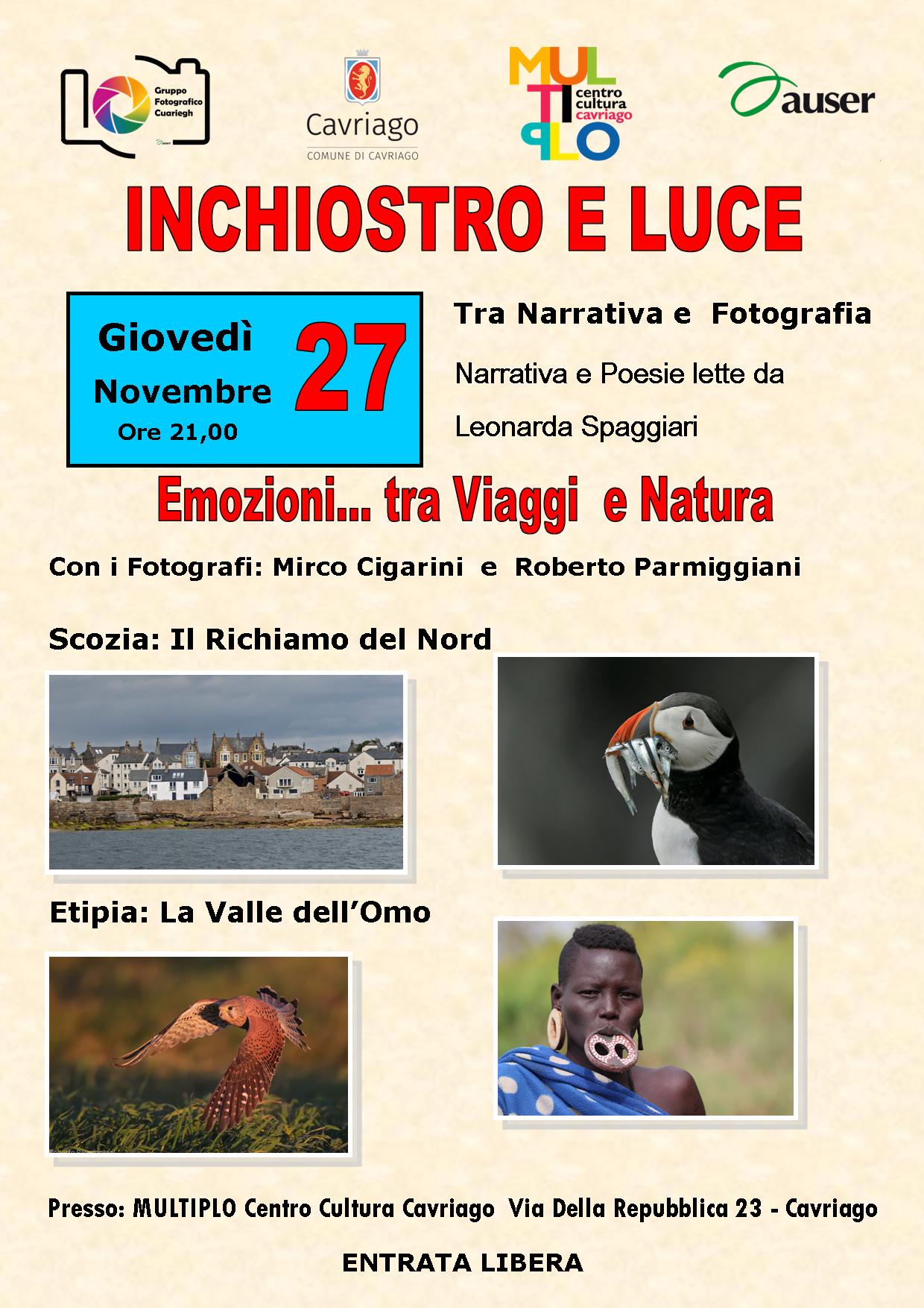 Giovedì 26 febbraio alle ore 21 torna la programmazione della rassegna “INCHIOSTRO E LUCE” a cura del Gruppo Fotografico Cuariegh – Auser. Durante la serata verranno proiettati video che ci porteranno, come in un film, a New York, a Washington e Philadelphia, ci tufferemo nel mare alla scoperta degli esseri viventi marini e infine elementi come il fuoco, la nebbia e i colori, ci suggeriranno emozioni nuove. Le immagini saranno di Annalisa, Massimo e Paolo, cucite da poesie e letture lette da Leonarda, il tutto con sottofondi musicali suonati da Massimo.