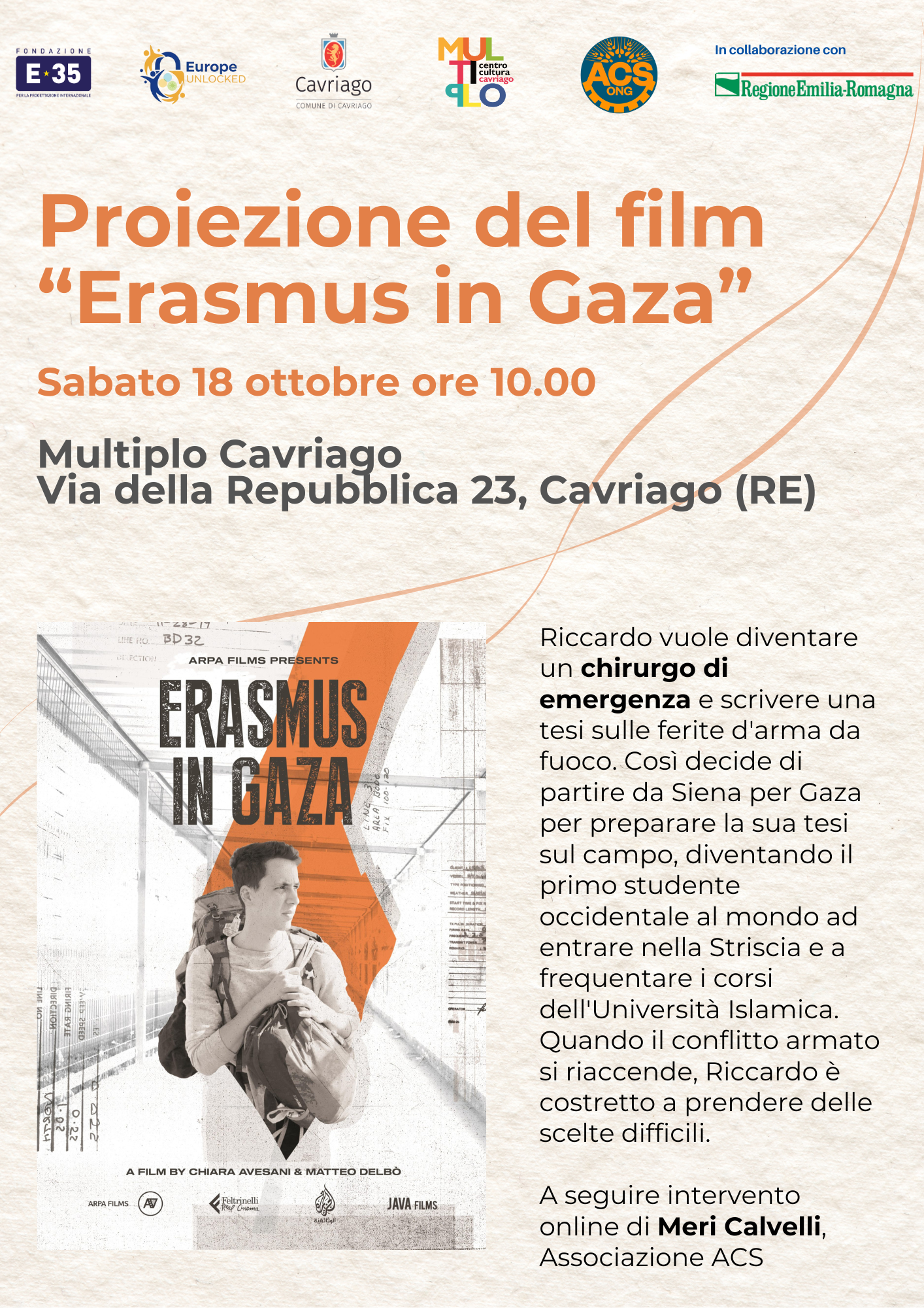 Sabato 18 ottobre 2025 presso il Multiplo di Cavriago (RE) sarà proiettato il film-documentario Erasmus in Gaza, un racconto autentico e intenso che porta lo spettatore dentro una delle aree più fragili e complesse del mondo contemporaneo.