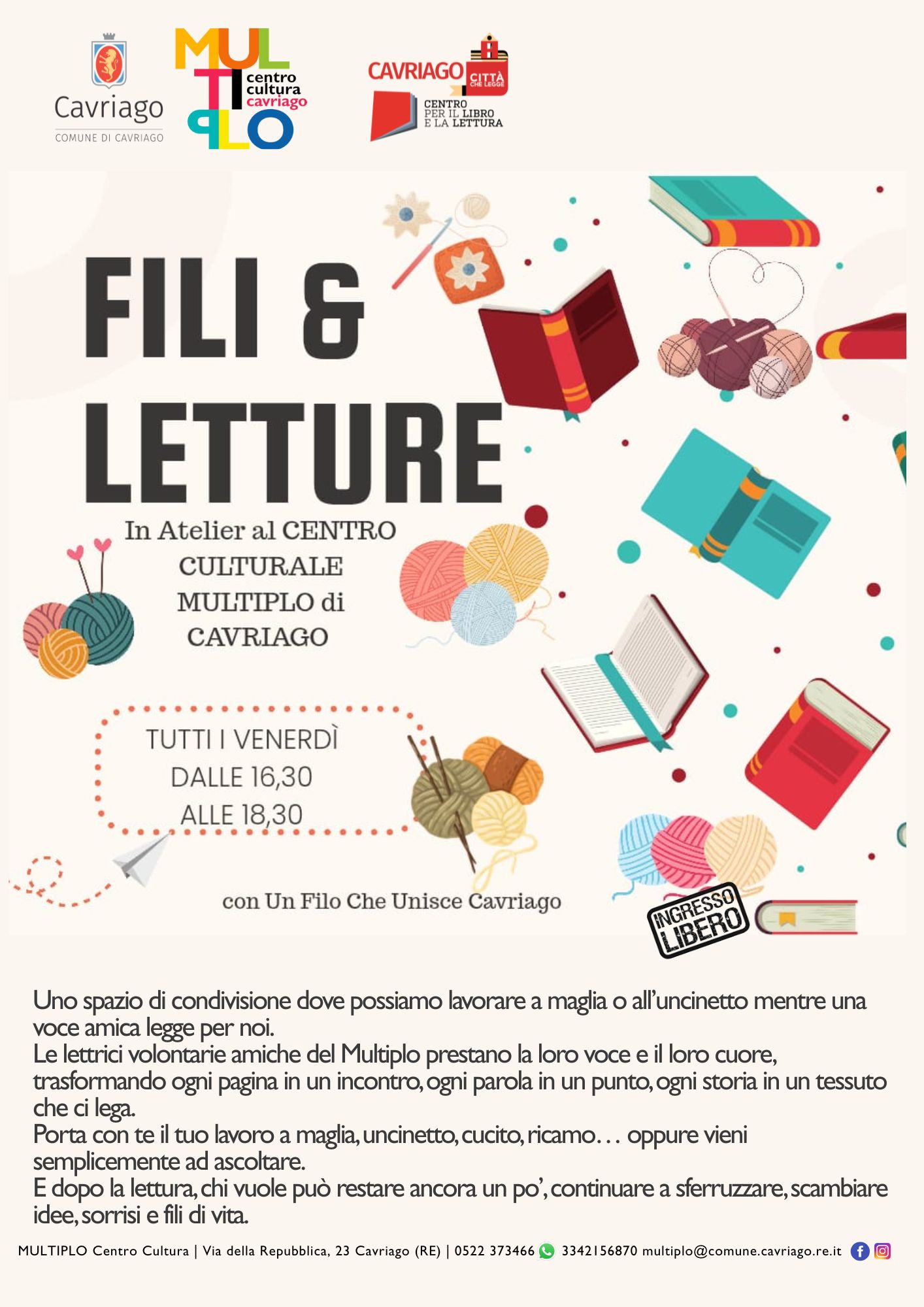 Uno spazio di condivisione, ideato da Il Filo che unisce Cavriago, dove possiamo lavorare a maglia o all’uncinetto mentre una voce amica legge per noi.