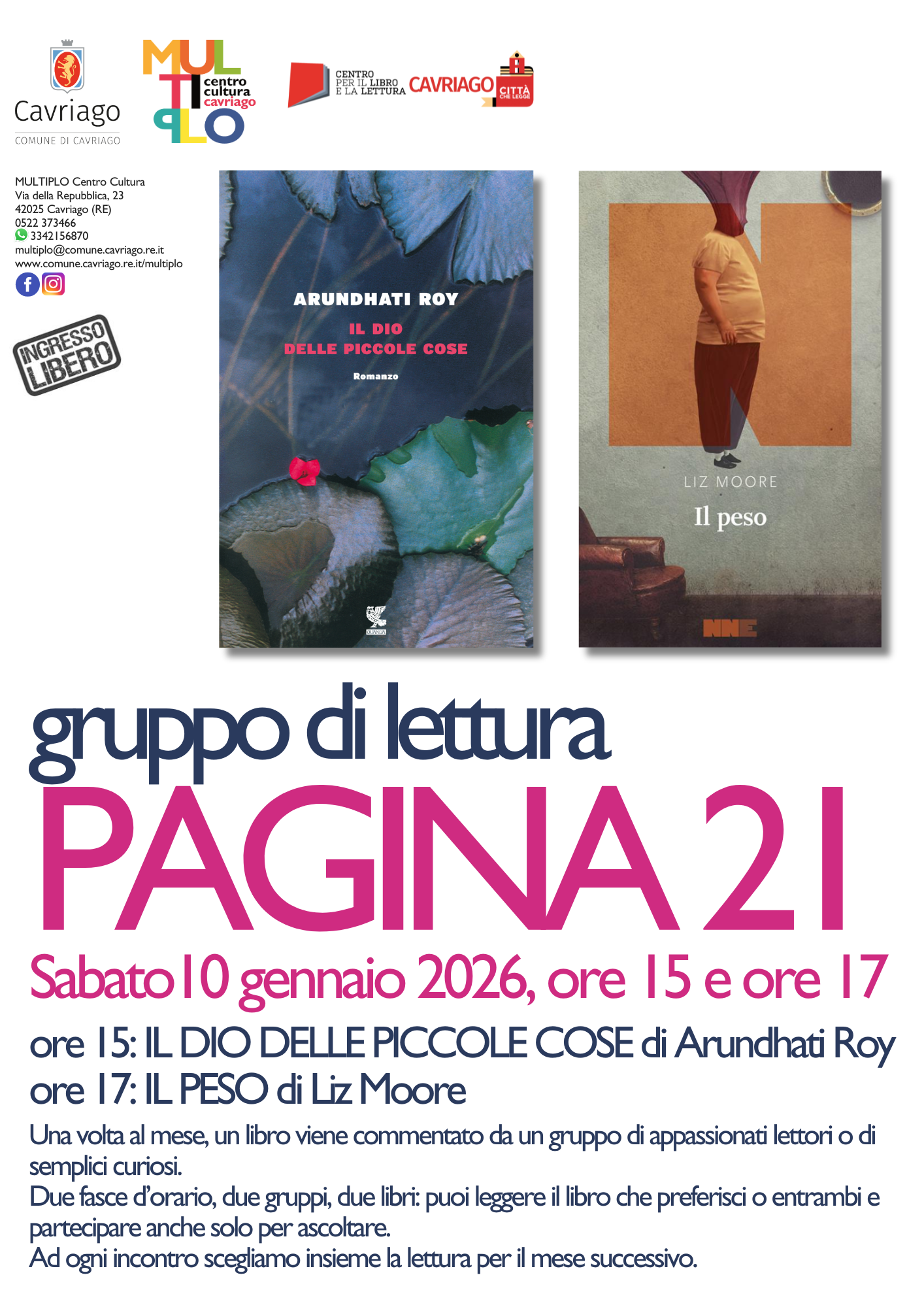 Benvenuti nel gruppo di lettura del Multiplo. L'appuntamento mensile per confrontarsi con altri lettori sulla lettura di un libro scelto insieme. Un libro viene commentato da un gruppo di appassionati lettori o di semplici curiosi. È il gruppo di lettura Pagina 21! Questo mese ci confrontiamo sulla lettura di: