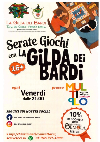 Giochi, allegria e un pizzico di sana competizione. Ogni venerdì il Multiplo si trasforma in un luogo di incontro, tra tavoli pieni, risate, strategie e nuove amicizie. Ogni partita è un’occasione per divertirsi, mettersi in gioco e condividere la passione per il mondo dei giochi da tavolo. La Gilda dei Bardi ti aspetta per vivere insieme una nuova serata all’insegna del gioco, della compagnia e del buonumore.