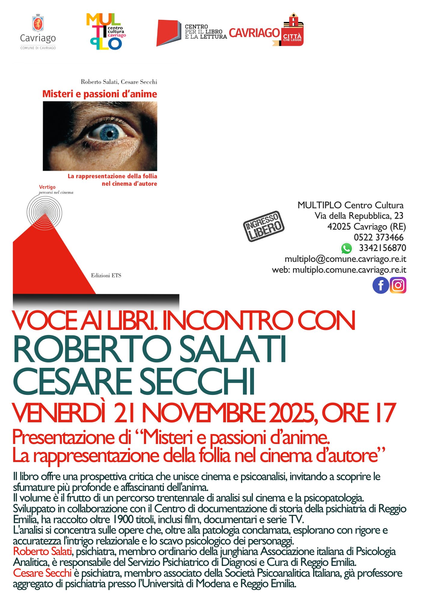 Gli autori Roberto Salati e cesare Secchi presentano il libro “Misteri e passioni d’anime. La rappresentazione della follia nel cinema d’autore”.