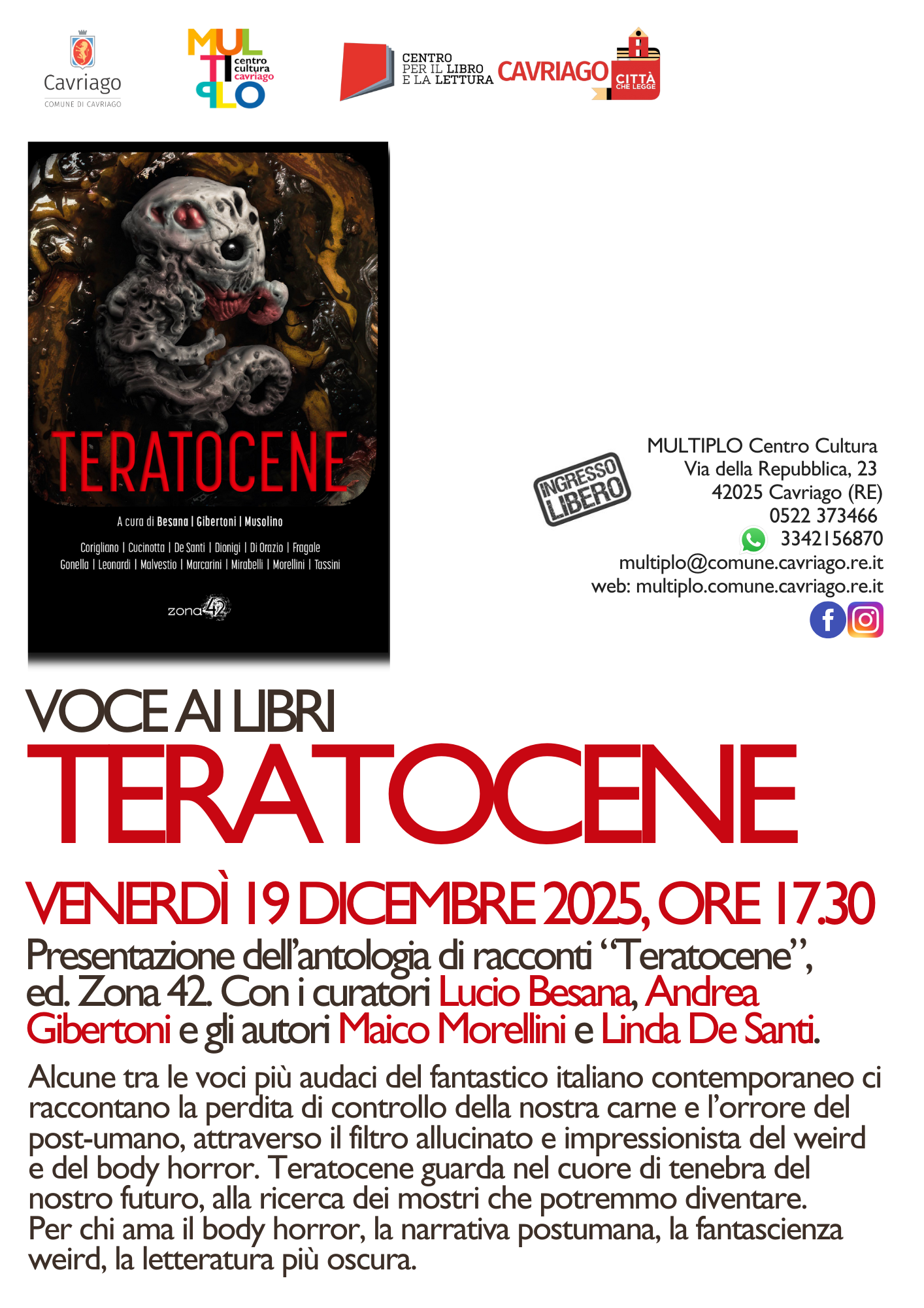 Presentazione dell’antologia di racconti “Teratocene”, ed. Zona 42.