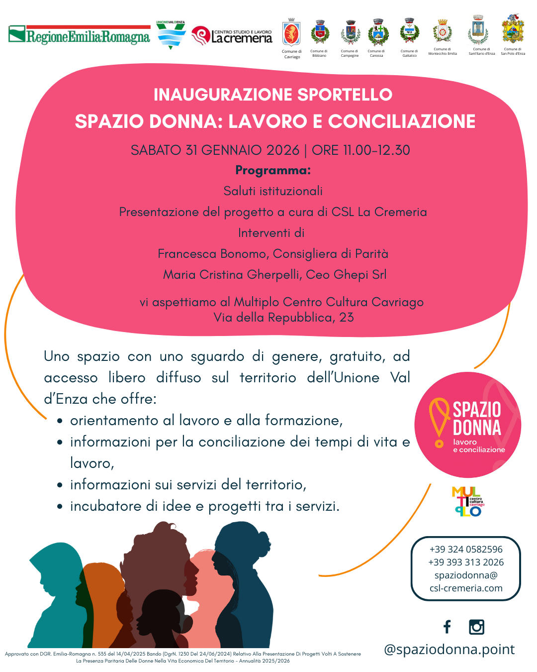 Lo sportello Spazio Donna conta già alcuni anni di attività: è infatti aperto dal 2022 sui 6 Comuni della Pianura Reggiana, gestito dal Centro Studio Lavoro di Cremeria.